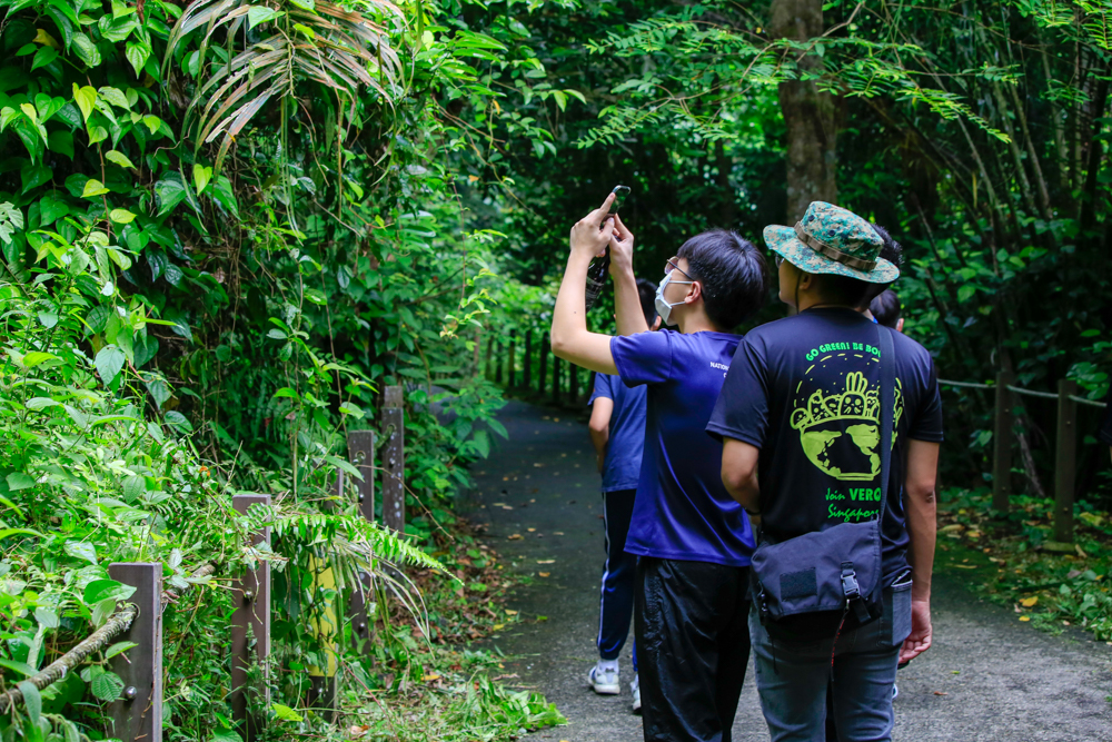 A small green snake was seen hanging on a branch in the distance, and you would not see it without careful observation. The teenagers’ sight and hearing heightened when they were away from school work and the virtual world. As they walked into the peaceful forest in Thomson Nature Park, they could even differentiate the sound of the wind. Along the way, coincidentally, they encountered some rare Raffles' banded langurs and macaques - their eyes sparkled with excitement and curiosity.