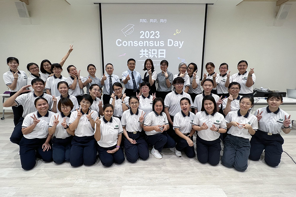 藉由开放式交流凝聚全校共识,新加坡慈济大爱幼教中心每年12月举办共识日,全体教职员与行政主管集思广益。2022年12月16日,教育志业发展室主管戴钰郿带领28位管理人员和教师,就幼教环境设施到课程内容的方方面面,盘点过去教育成果,立下来年展望。