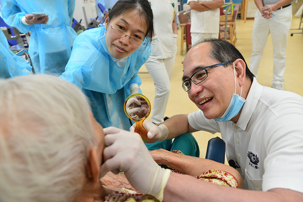 牙科中心为此配置了便携型器材套组,便于居家牙科往诊。对于疗养院牙科往诊,慈济则与数家疗养机构(ILTC institution)展开长期合作,携手为卧床病患谋福,也传授疗养机构的护工有关口腔健康的卫教知识。
